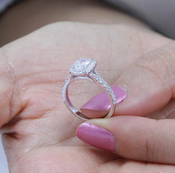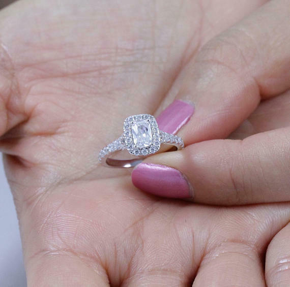 3Ct Radiant Cut Diamond Halo Split Shank Engagement Ring 14K White Gold Finish