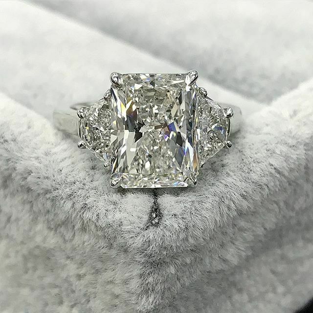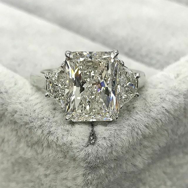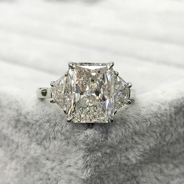 3Ct Radiant Cut Diamond Three Stone Ring 14K White Gold Finish Trapezoid Accents