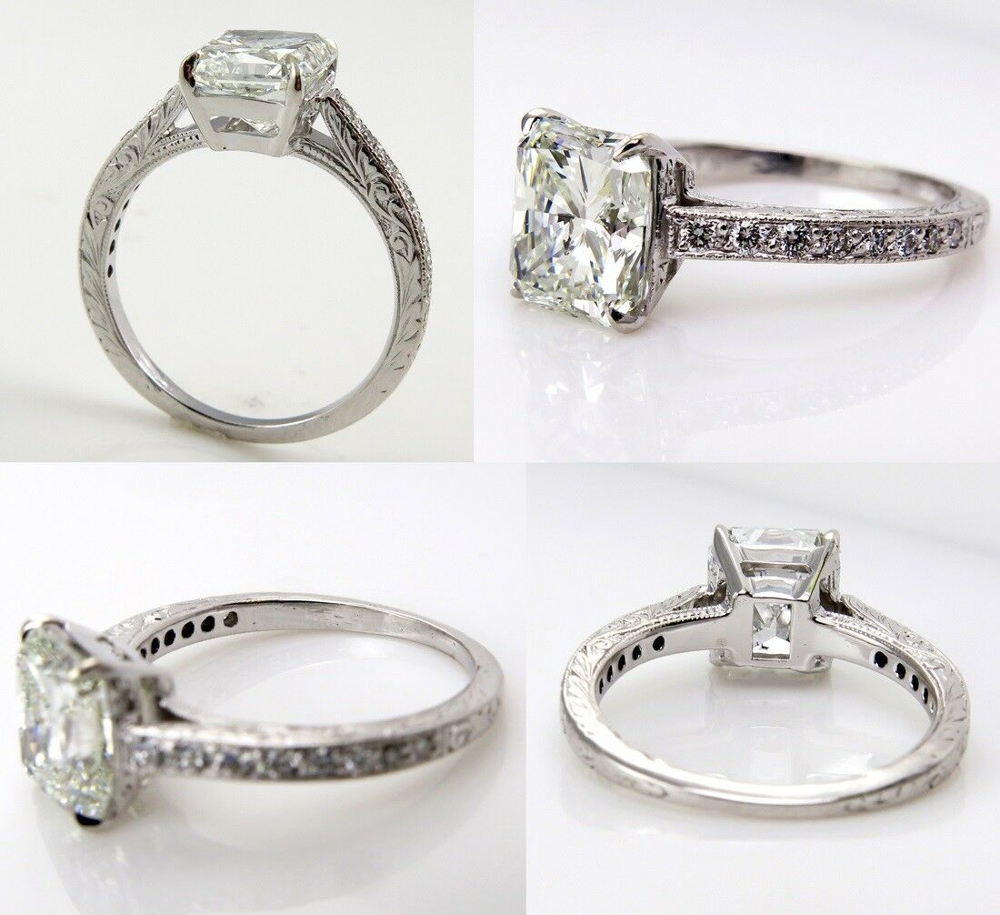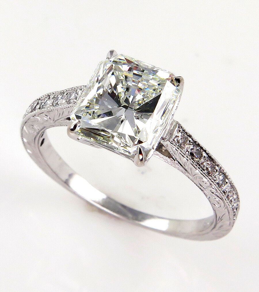 3Ct Radiant Cut Diamond Vintage Antique Engagement Ring 14K White Gold Finish