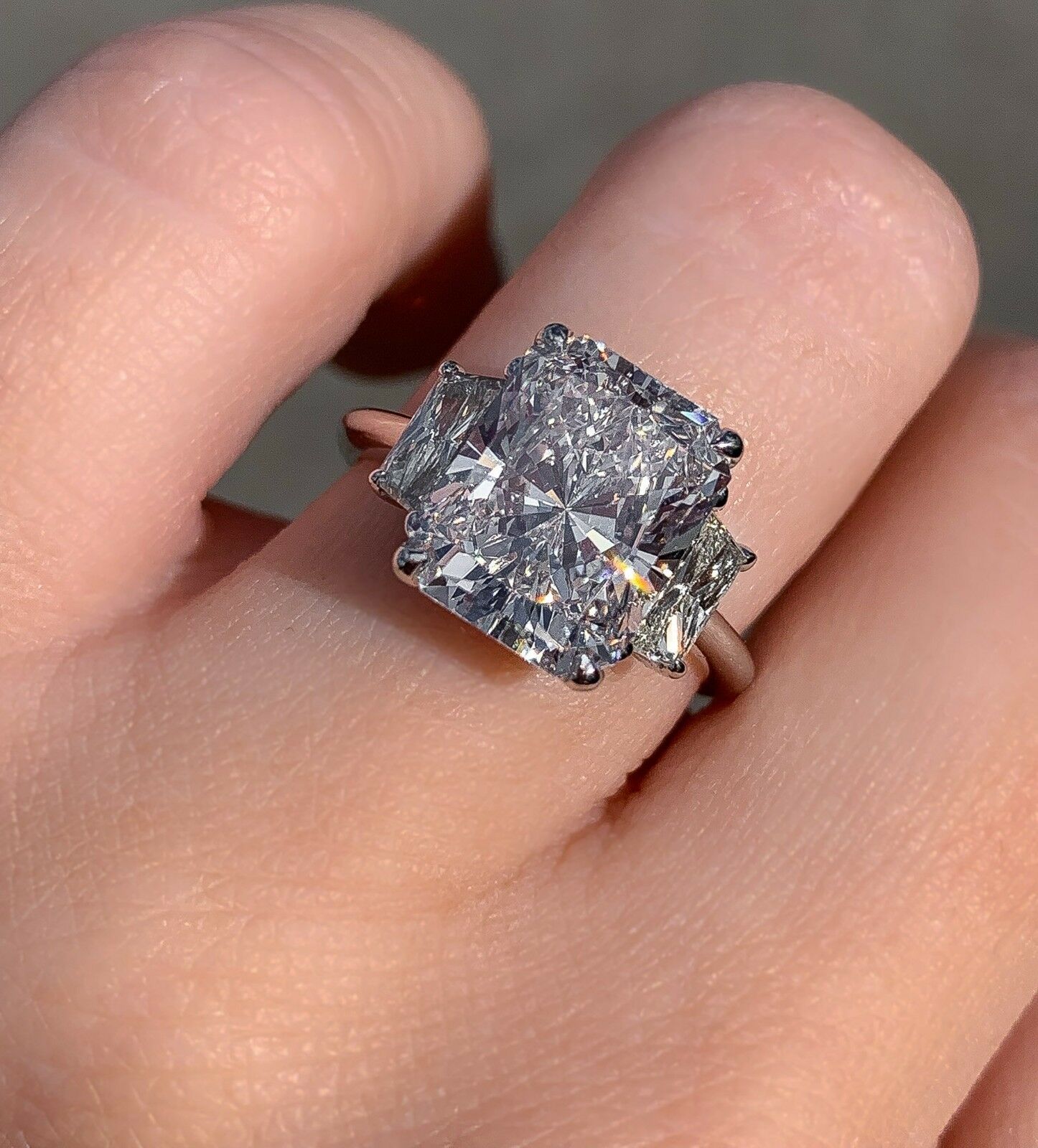 3ct Radiant Diamond Baguette Sides Trilogy Engagement Ring 14k White Gold Finish