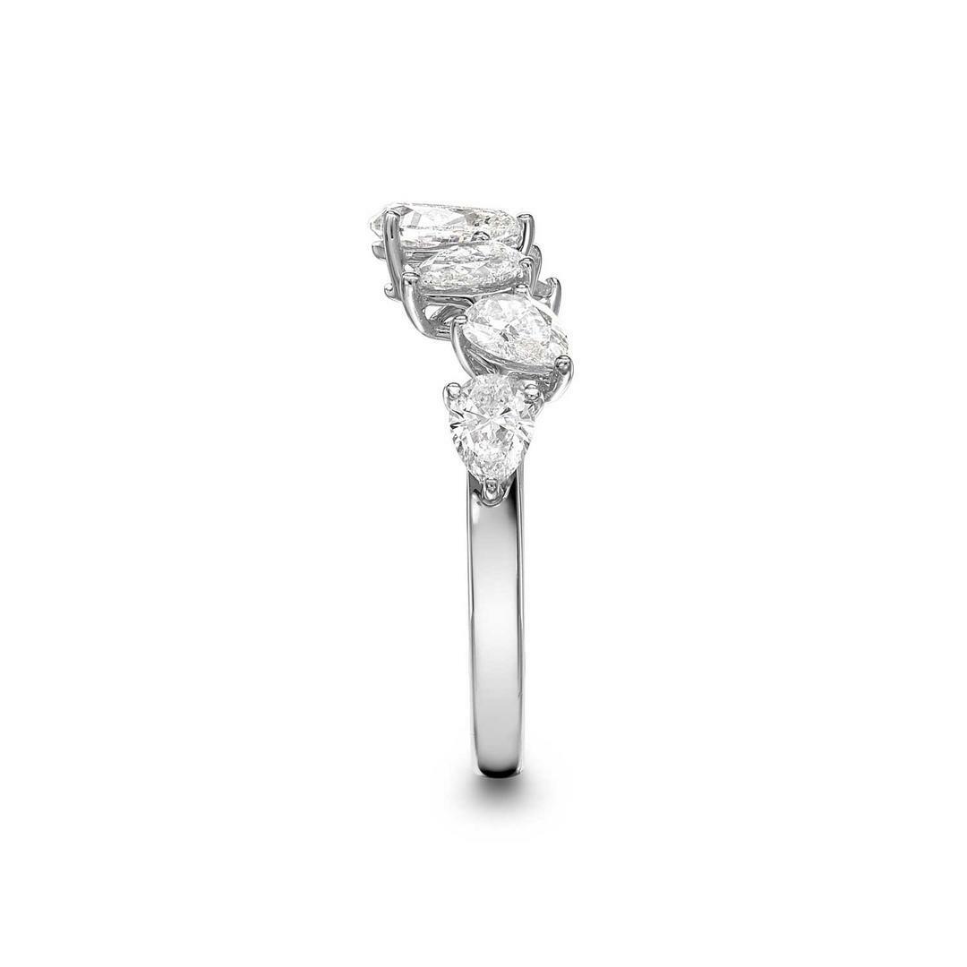 3ct Random Set Pear Cut Diamond Solitaire Engagement Ring 14k White Gold Finish