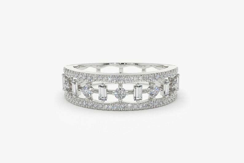 3ct Round Baguette Cut Diamond Split Band Art Deco Design 14k White Gold Finish