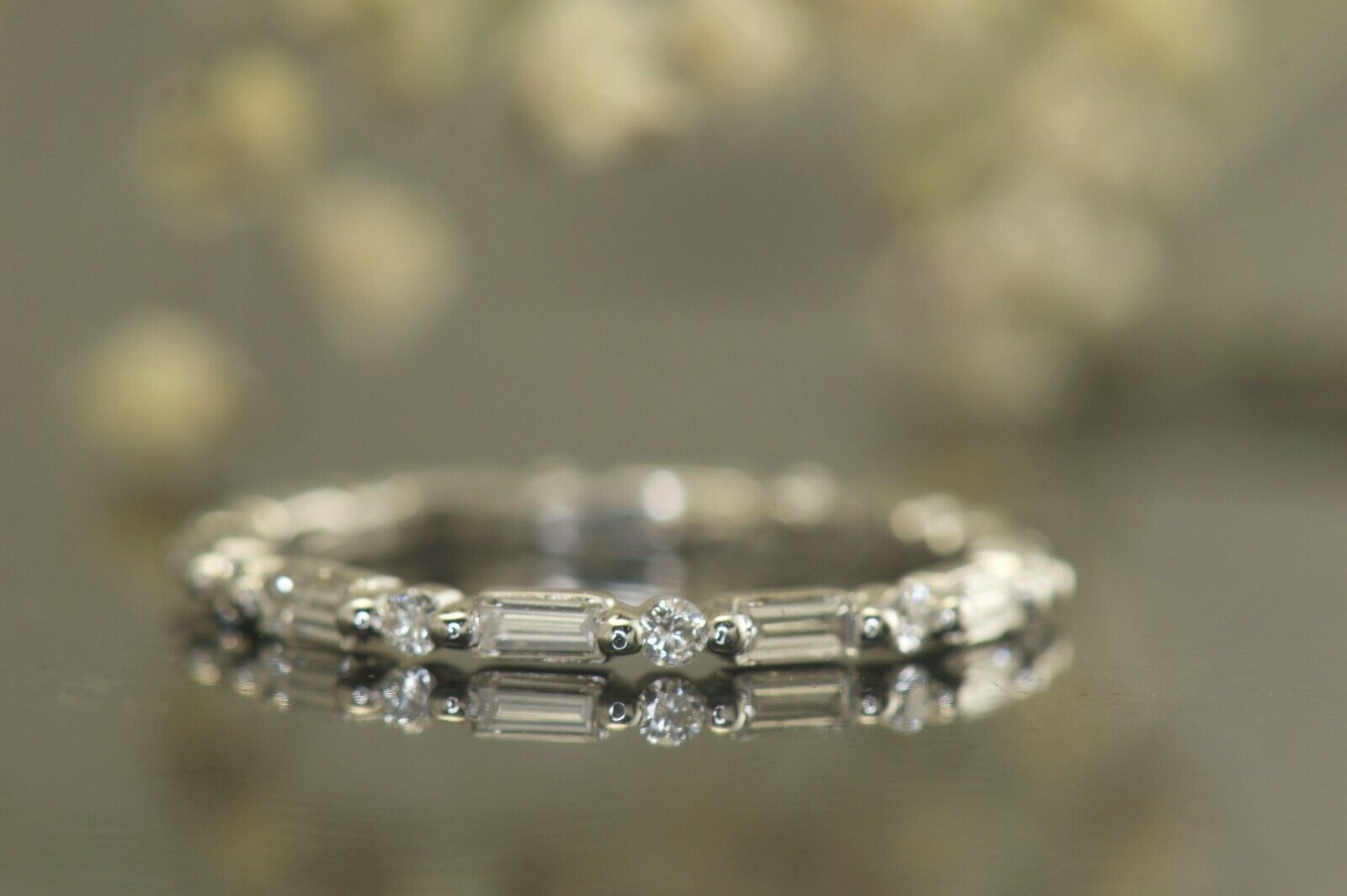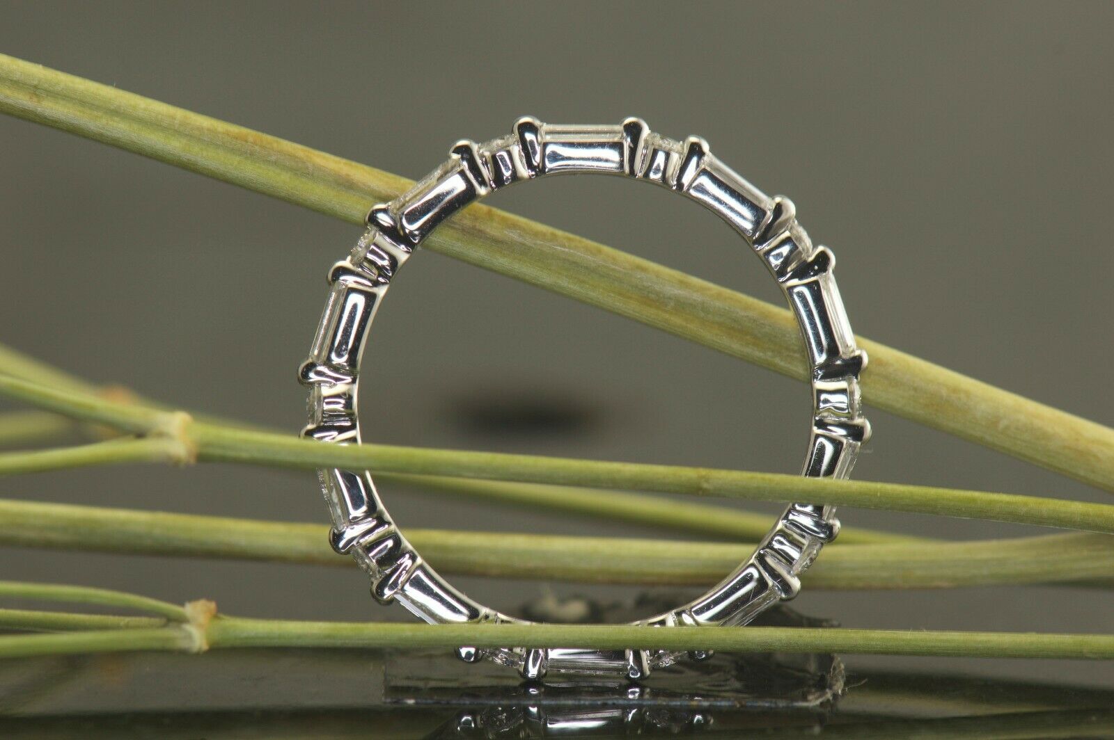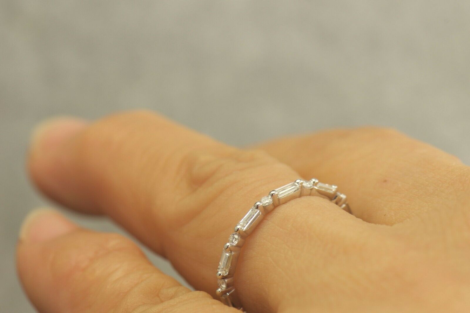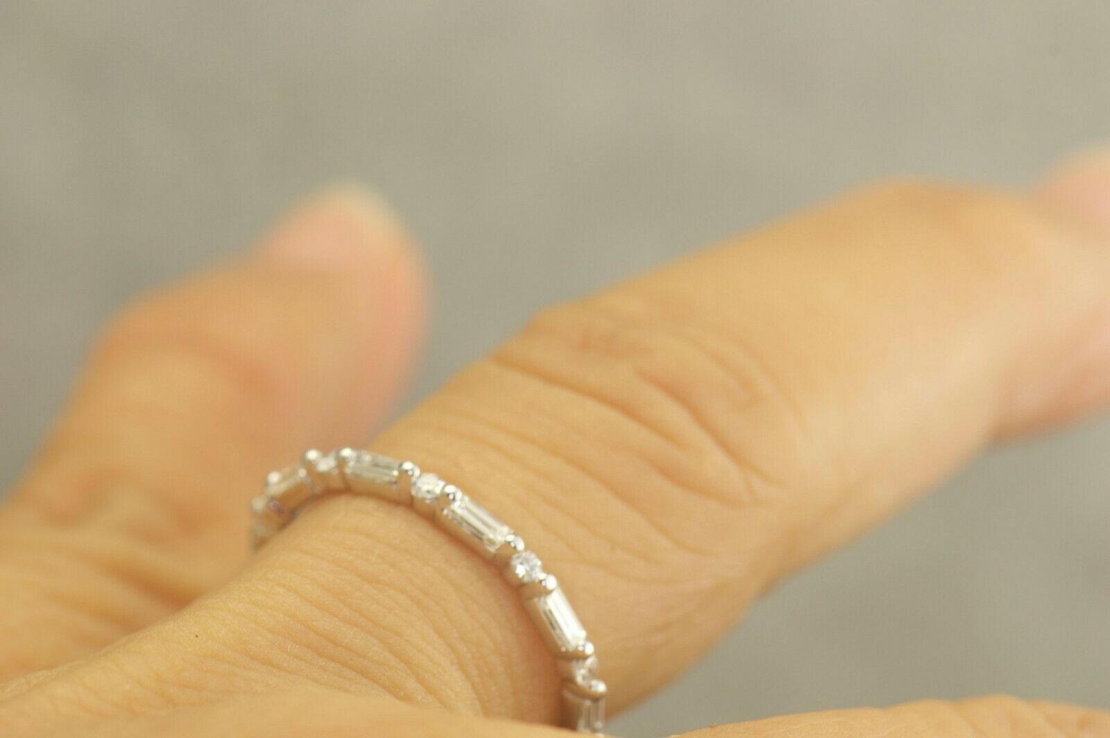 3Ct Round Baguette Diamonds Minimalist Eternity Wedding Band 14K White Gold Over