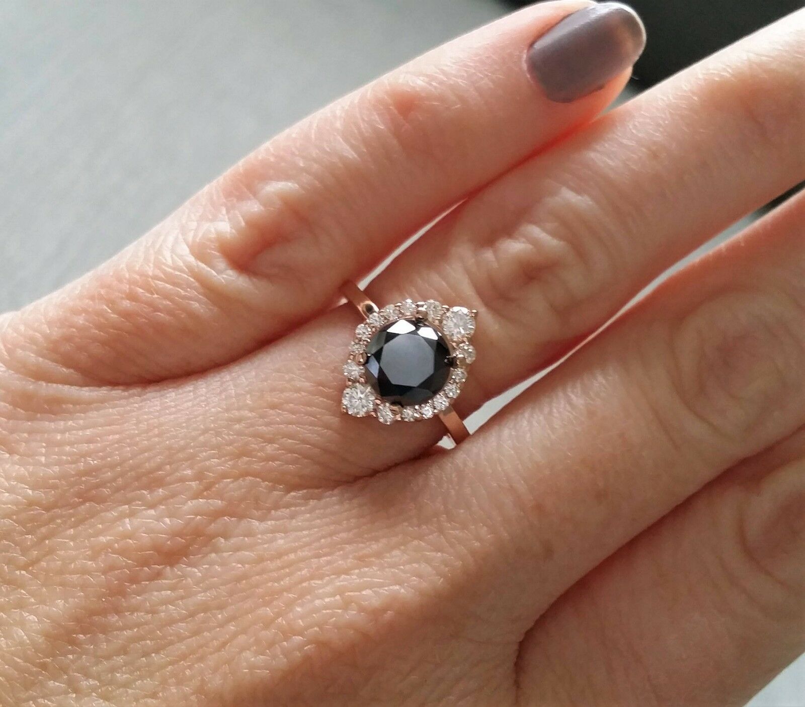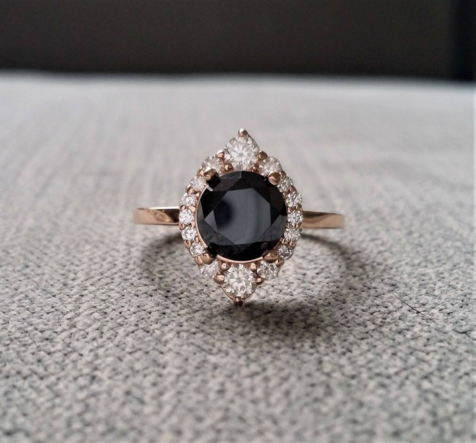 3Ct Round Black Diamond Crown Halo Solitaire Engagement Ring 14K Rose Gold Over