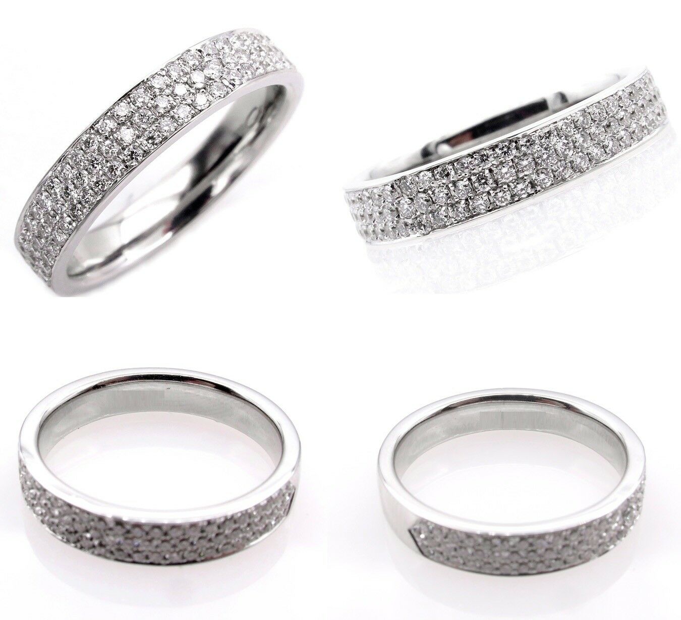 3Ct Round Brilliant Cut Diamond 3 Row Eternity Wedding Band 18K White Gold Over