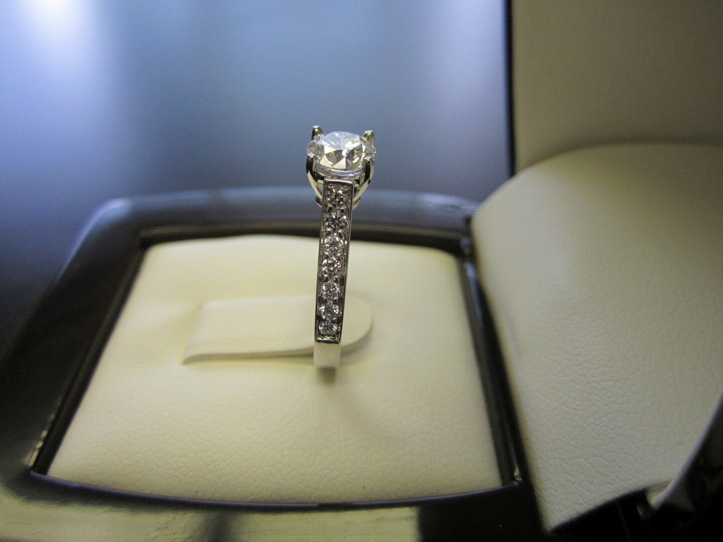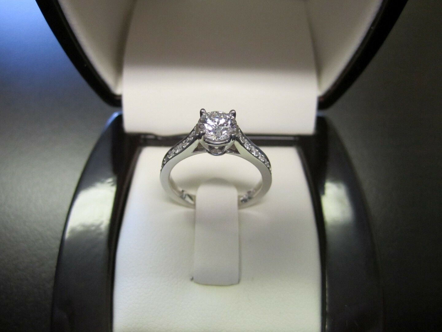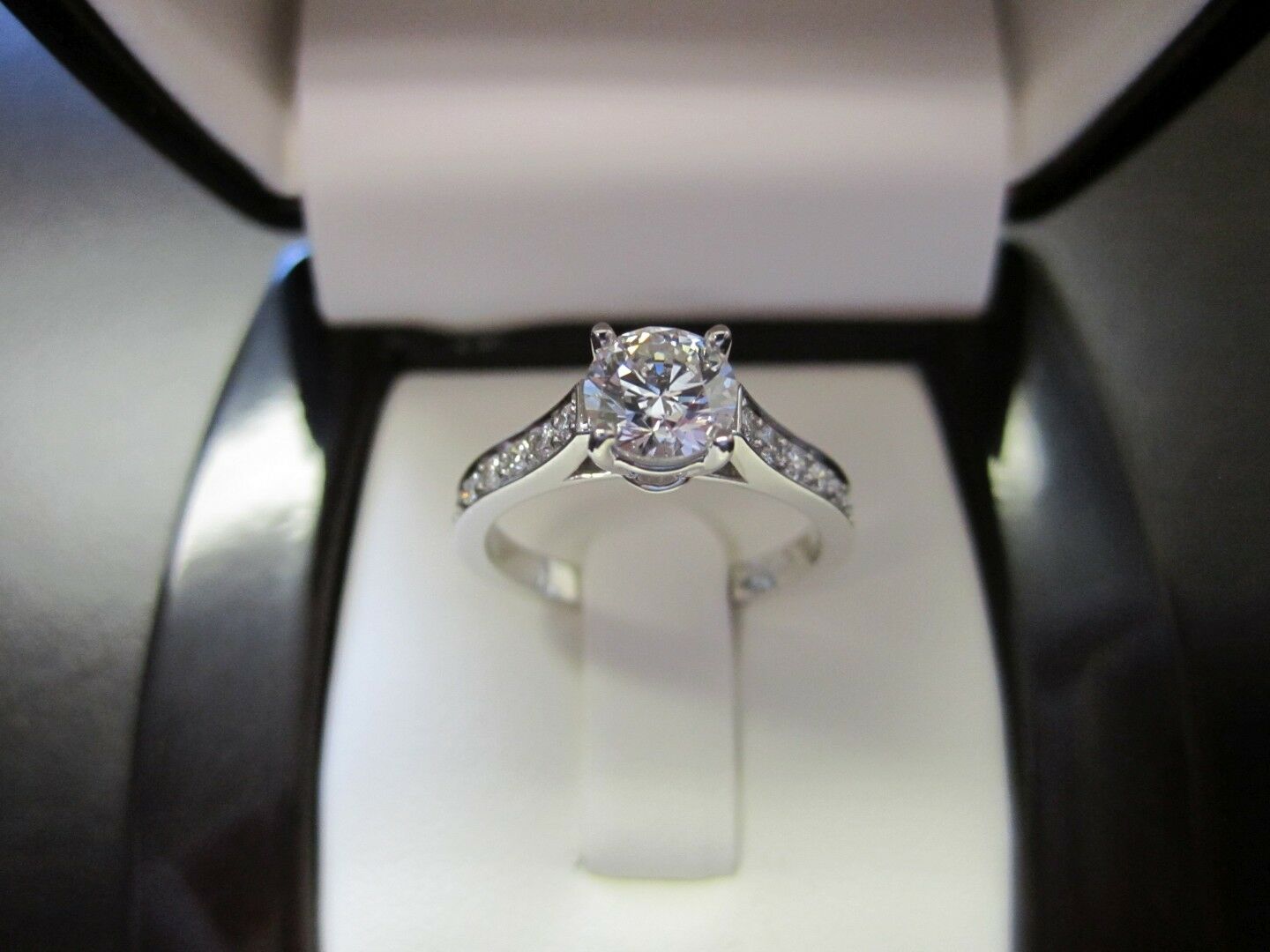 3Ct Round Brilliant Cut Diamond Solitaire Ring with Accents 18K White Gold Over