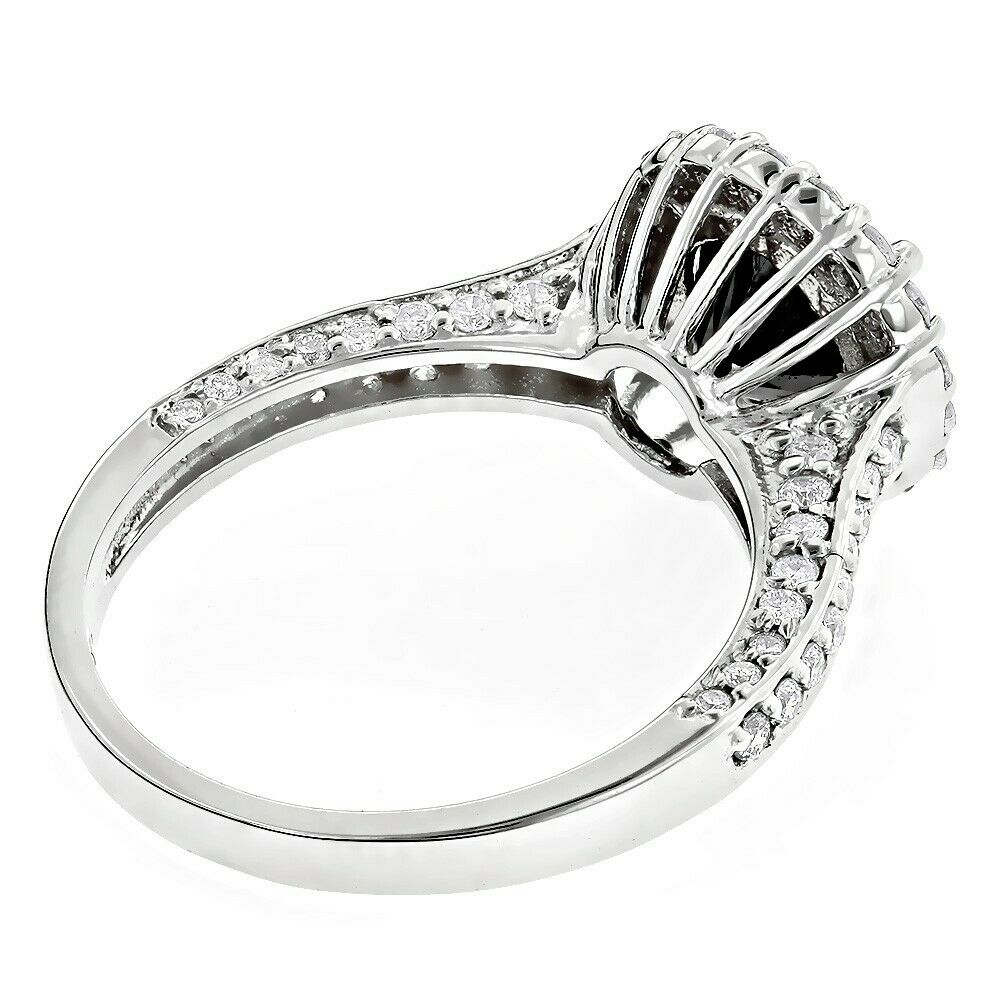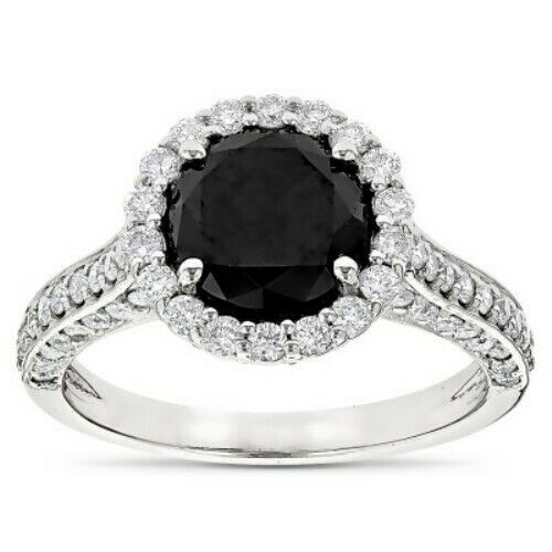 3Ct Round Cut Black Diamond Halo Engagement Ring with Accent 14K White Gold Over