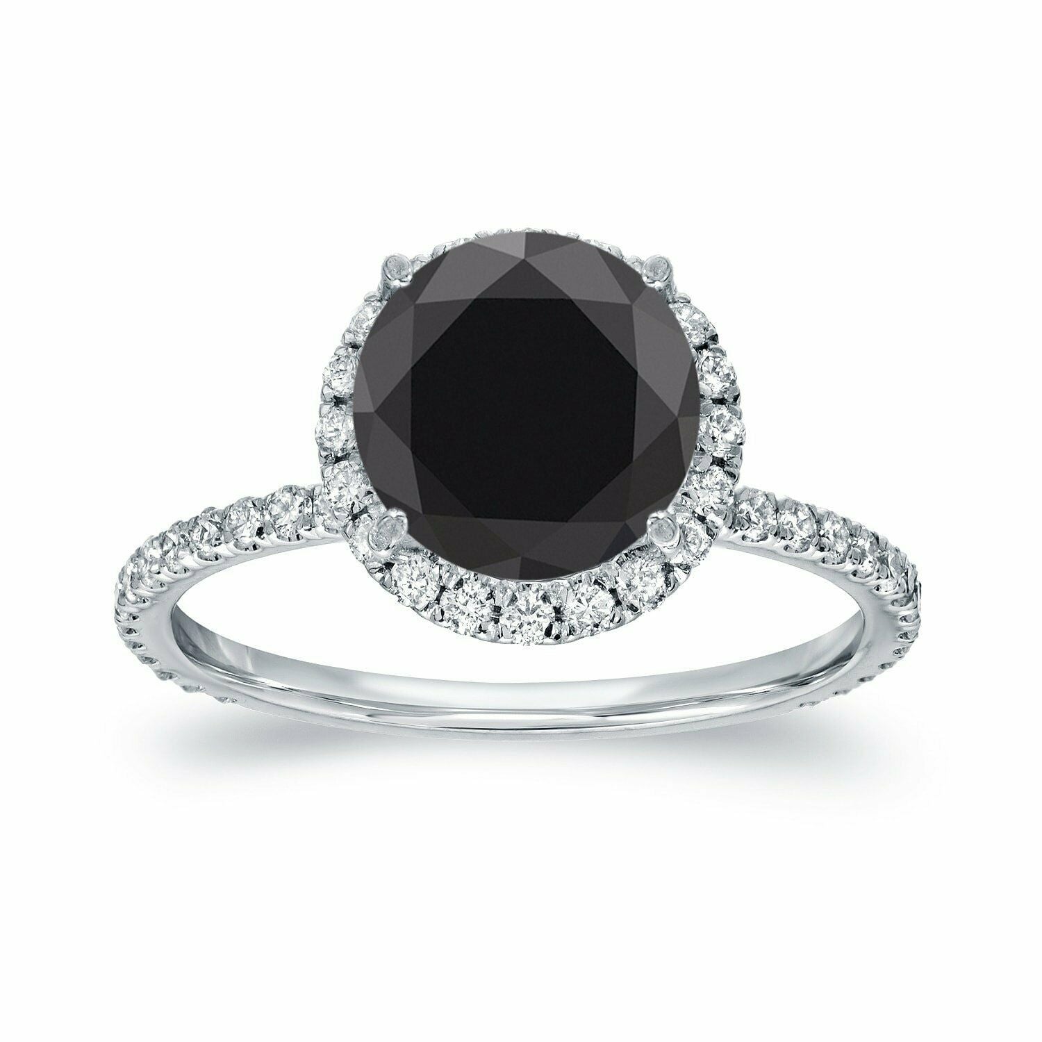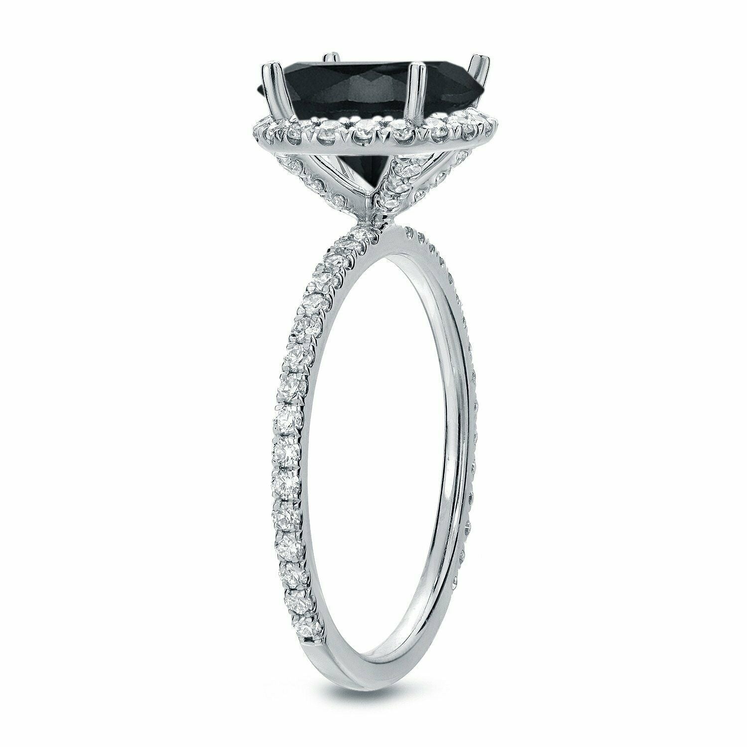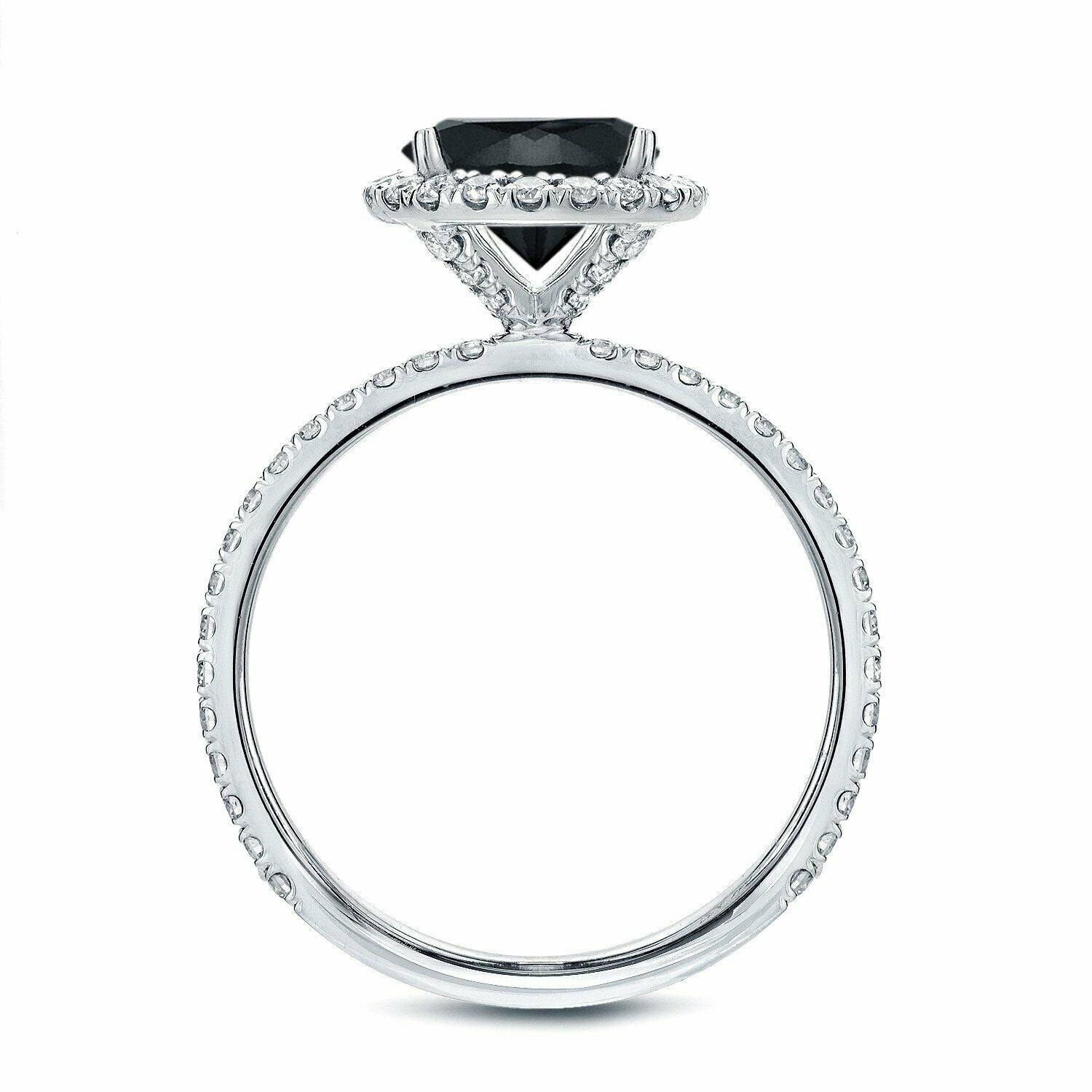 3Ct Round Cut Black Diamond Solitaire Halo Engagement Ring 14K White Gold Finish