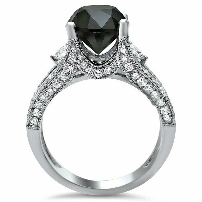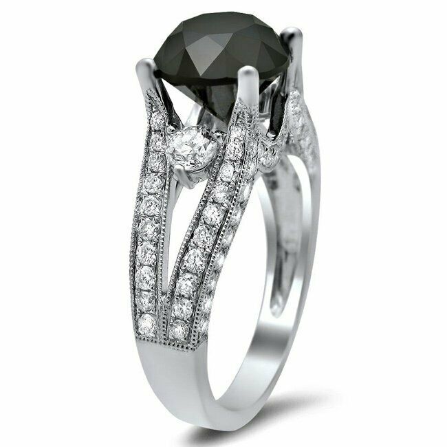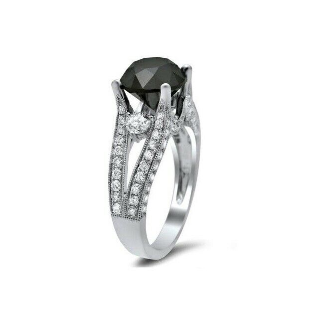 3Ct Round Cut Black Diamond Split Shank Engagement Ring 14K White Gold Finish