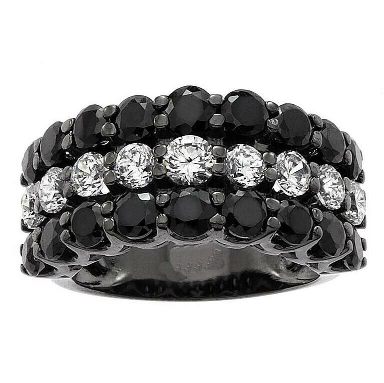 3ct Round Cut Black Diamond Wedding Ring Band Half Eternity 14k White Gold Over