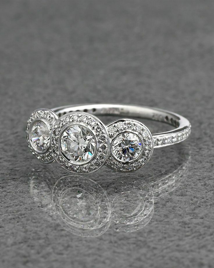 3Ct Round Cut Diamond Accent Halo Trilogy Engagement Ring 14K White Gold Finish