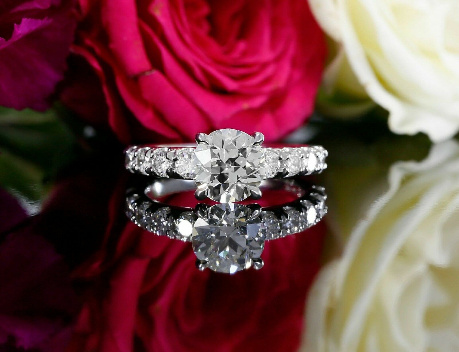 3ct Round Cut Diamond Accent Solitaire Engagement Ring 14k White Gold Finish New