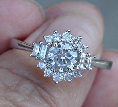 3Ct Round Cut Diamond Baguette Accent Halo Engagement Ring 14K White Gold Finish