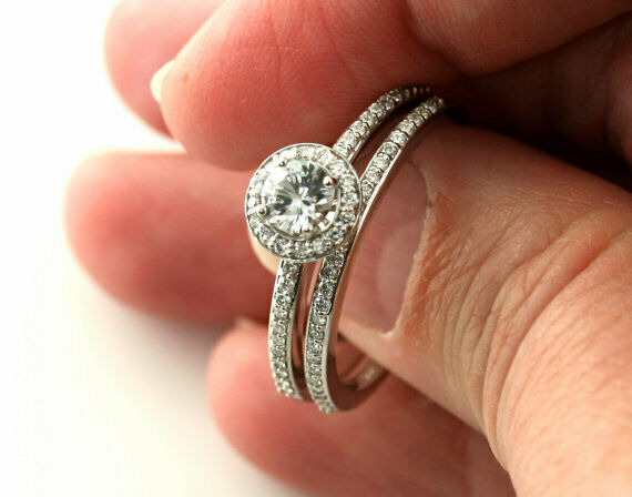 3Ct Round Cut Diamond Bridal Set Halo Engagement Ring Band 14K White Gold Finish