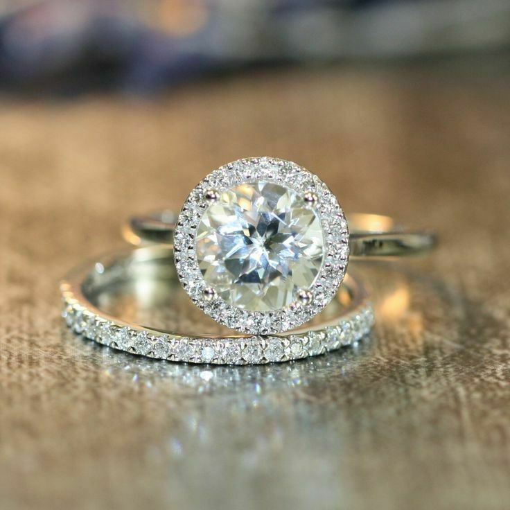 3Ct Round Cut Diamond Classic Bridal Set Halo Ring Band 14K White Gold Finish