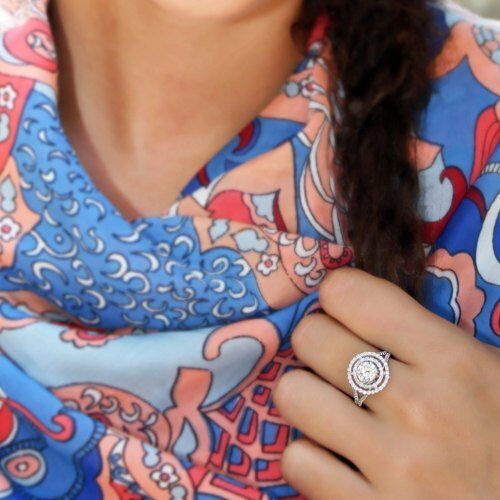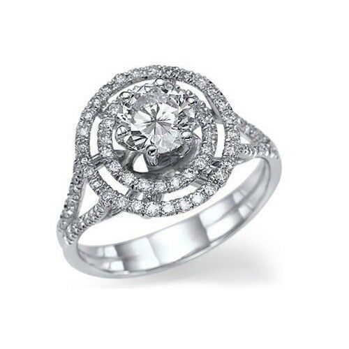 3ct Round Cut Diamond Double Halo Cocktail Engagement Ring 14k White Gold Finish
