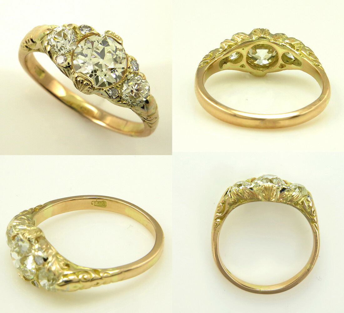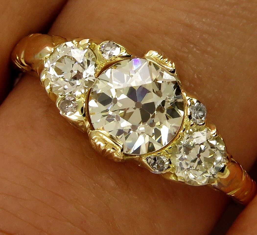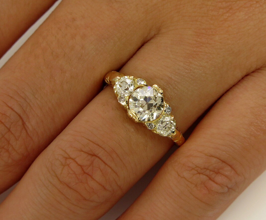 3Ct Round Cut Diamond Edwardian Vintage Engagement Ring 14K Yellow Gold Finish