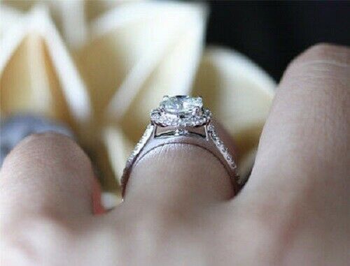 3Ct Round Cut Diamond Elegant Halo Women Engagement Ring 14K White Gold Finish