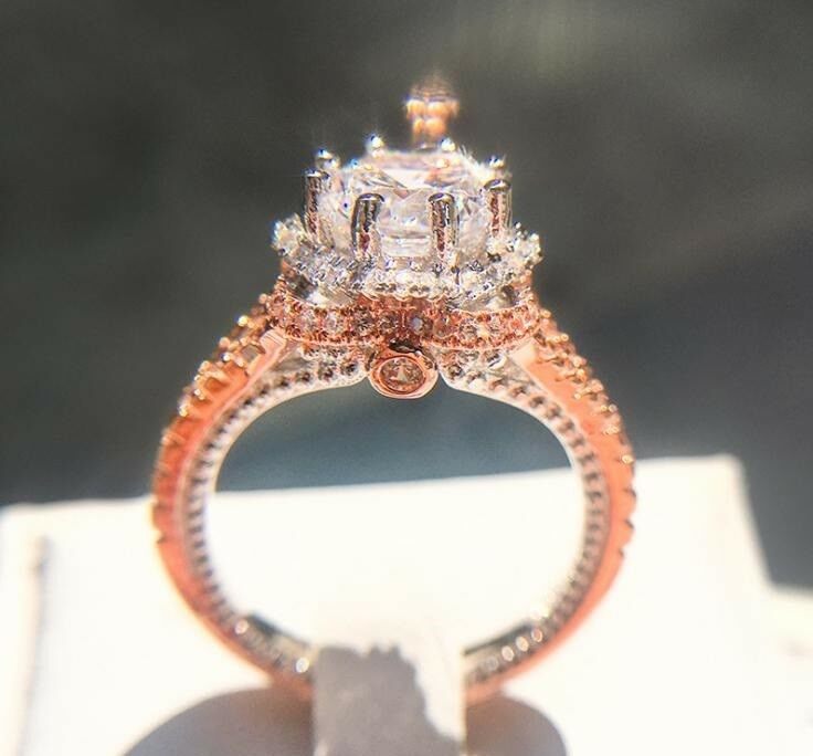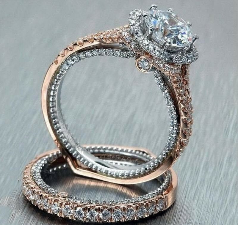 3ct Round Cut Diamond Engagement Ring 14k Dual Tone Over Halo Antique Bridal Set