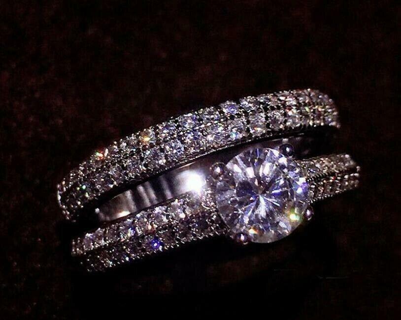 3ct Round Cut Diamond Engagement Ring 14k White Gold Finish Bridal Set Women