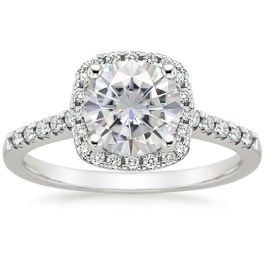 3ct Round Cut Diamond Engagement Ring 14k White Gold Finish Halo with Accents