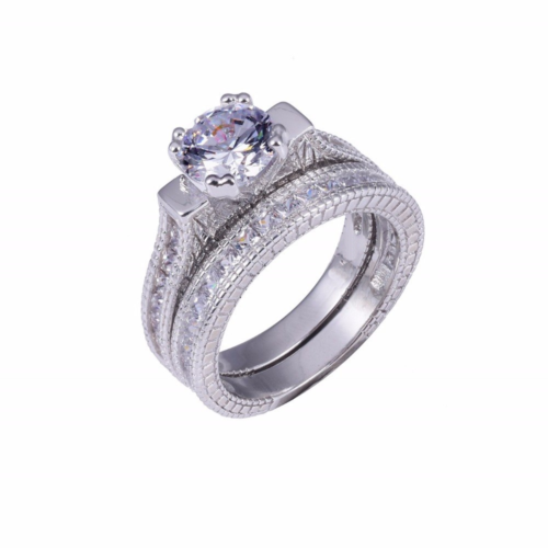 3ct Round Cut Diamond Engagement Ring 14k White Gold Finish Vintage Bridal Set