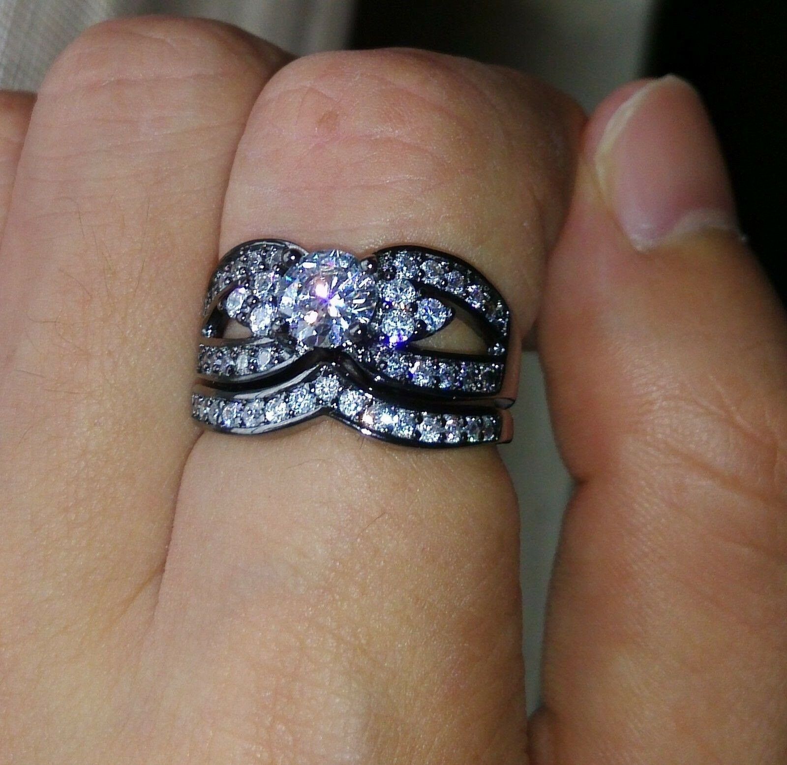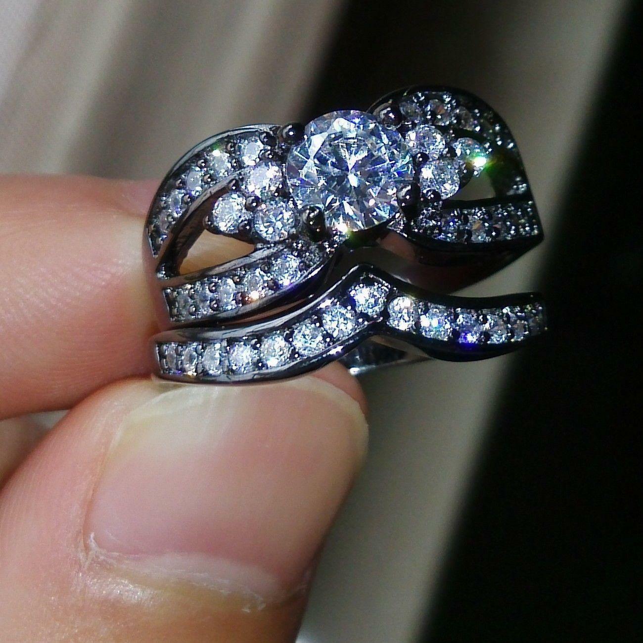 3ct Round Cut Diamond Engagement Ring 14k WhiteGold Finish Split Band Bridal Set