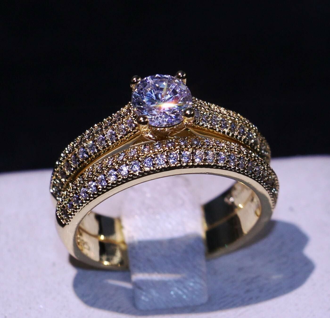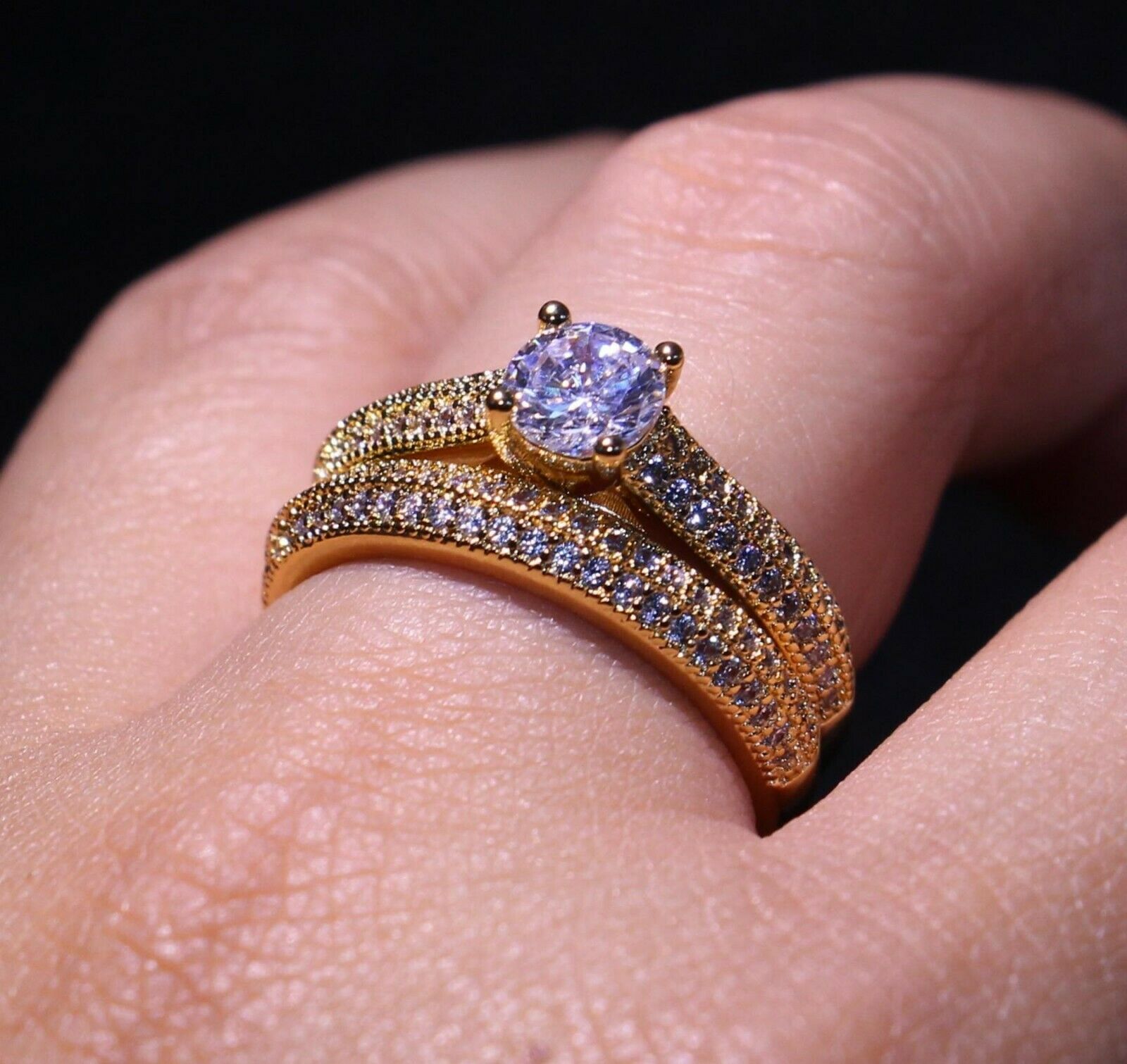 3ct Round Cut Diamond Engagement Ring 14k Yellow Gold Finish Bridal Set Promise