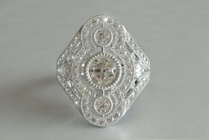 3ct Round Cut Diamond Engagement Ring Art Deco Trilogy 14k White Gold Finish