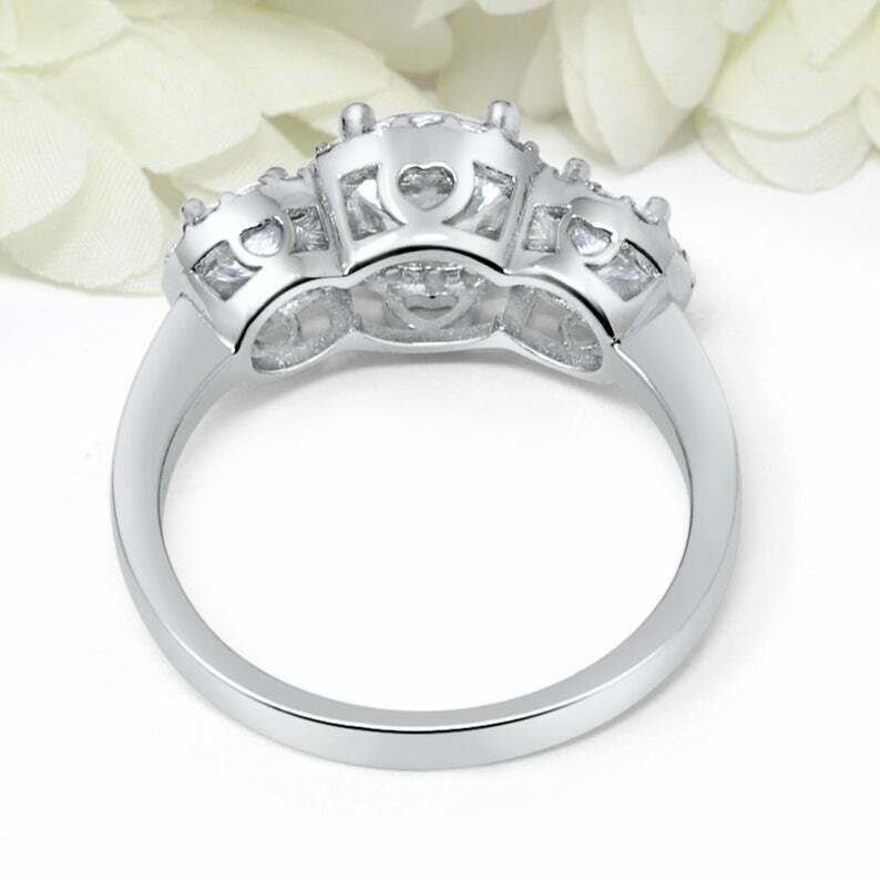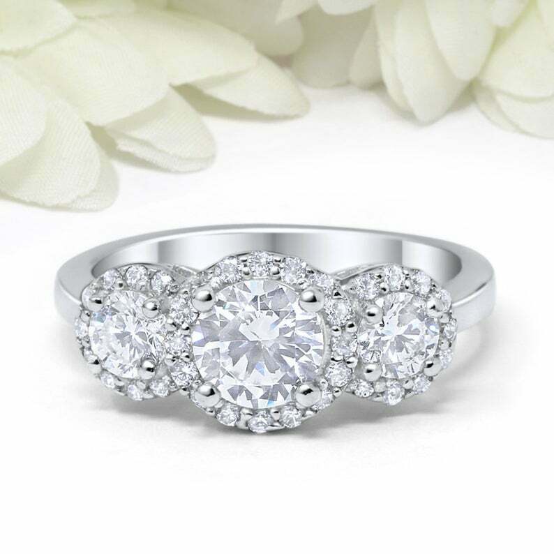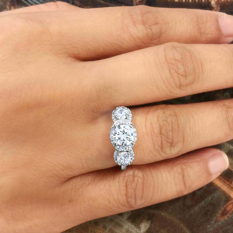 3ct Round Cut Diamond Engagement Ring Halo Trilogy Solitaire 14k White Gold Over