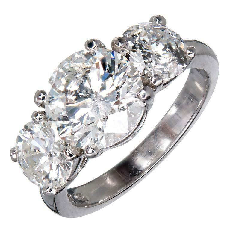 3ct Round Cut Diamond Engagement Ring Trilogy Solitaire 14k White Gold Finish
