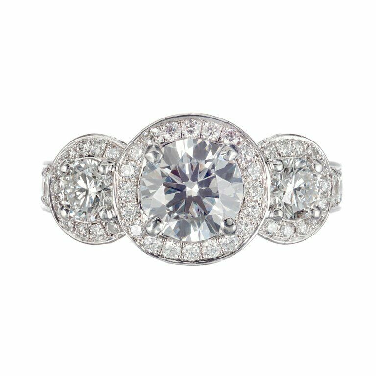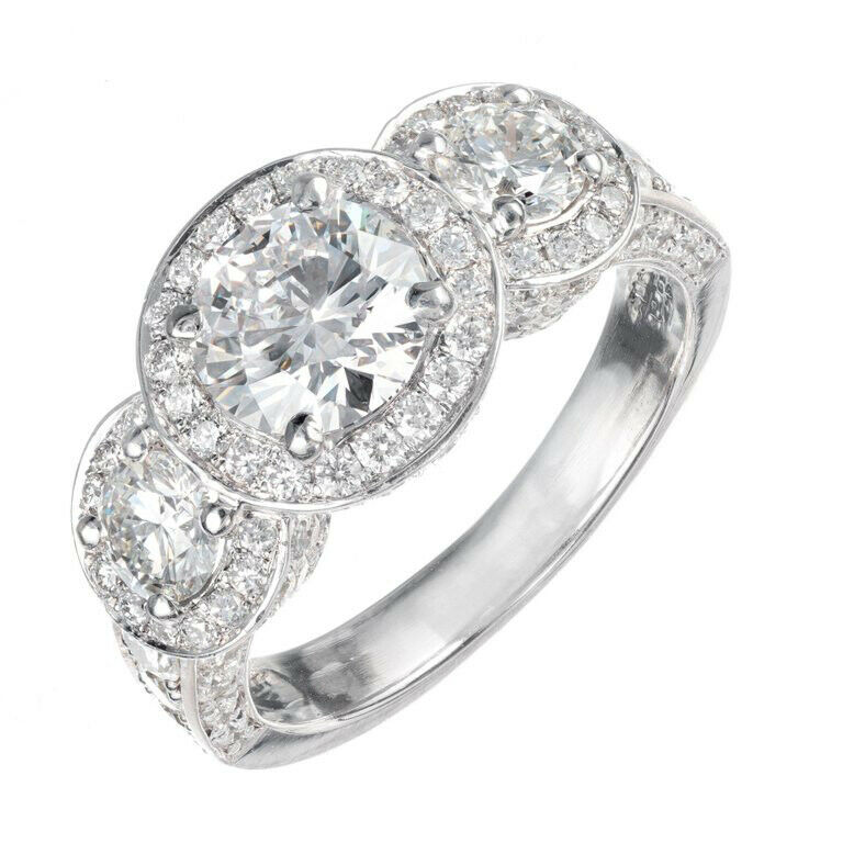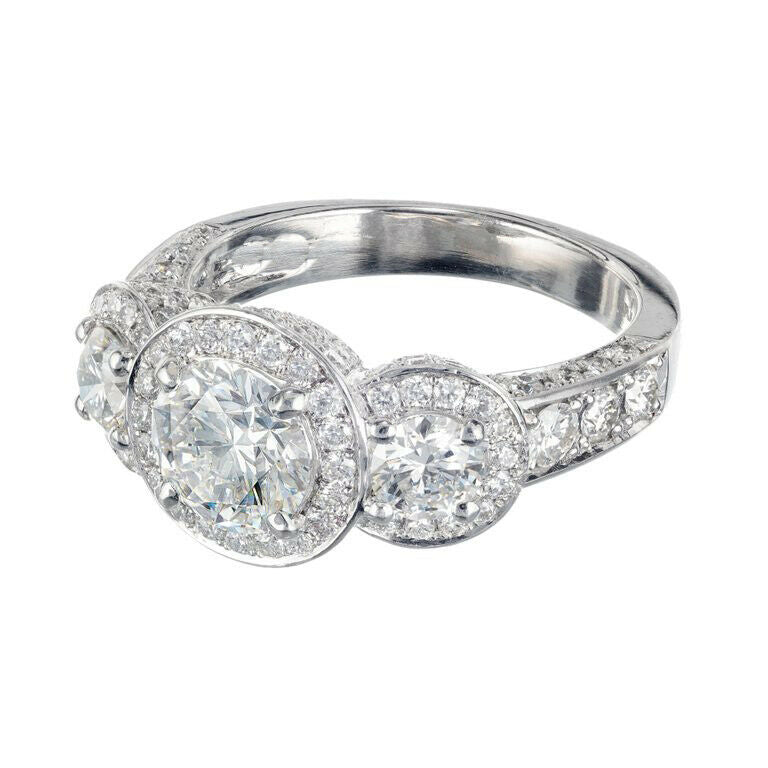 3ct Round Cut Diamond Engagement Ring Triple Halo Trilogy 14k White Gold Finish