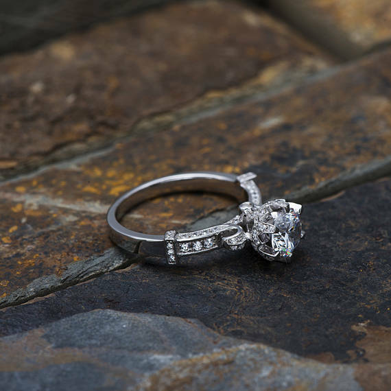 3Ct Round Cut Diamond Exquisite Vintage Engagement Ring 14K White Gold Finish