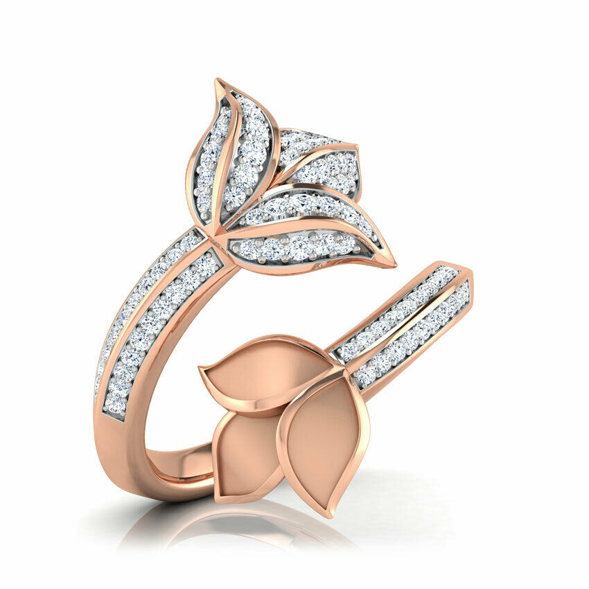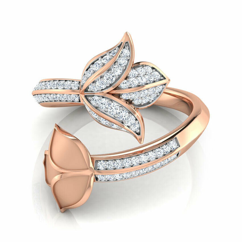 3Ct Round Cut Diamond Floral Lotus Bypass Engagement Ring 14K Rose Gold Finish