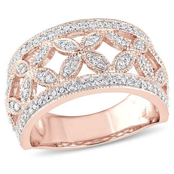 3Ct Round Cut Diamond Floral Milgrain Wide Engagement Ring 14K Rose Gold Finish