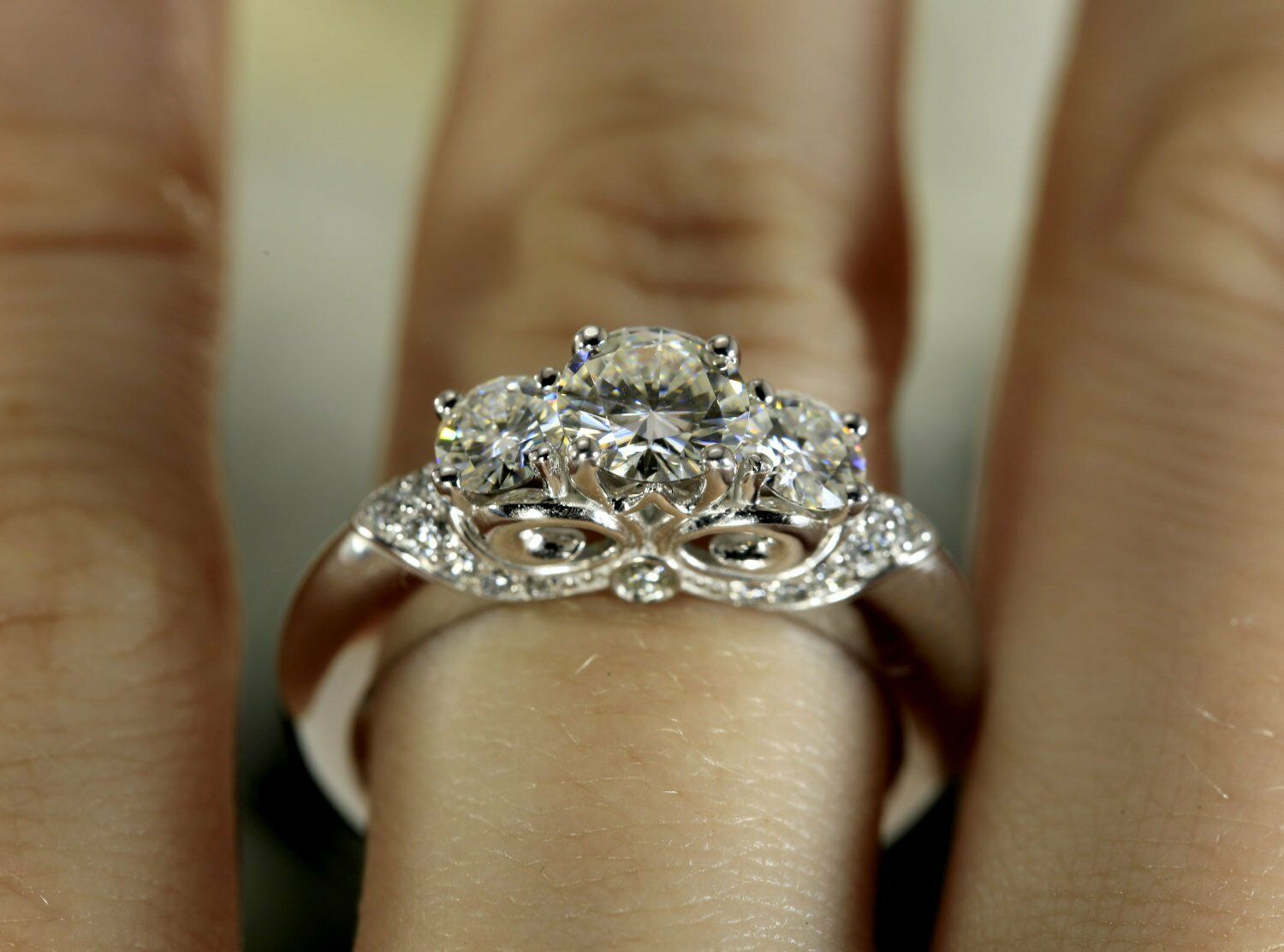 3ct Round Cut Diamond Gatsby Trilogy Antique Engagement Ring 14k White Gold Over