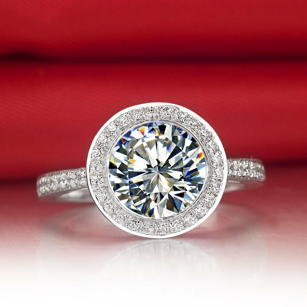 3Ct Round Cut Diamond Halo Round Accents Engagement Ring 14K White Gold Finish