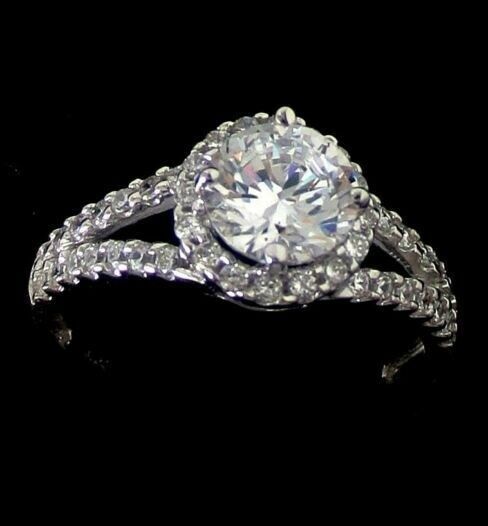 3Ct Round Cut Diamond Halo Split Shank Engagement Ring 18K White Gold Finish
