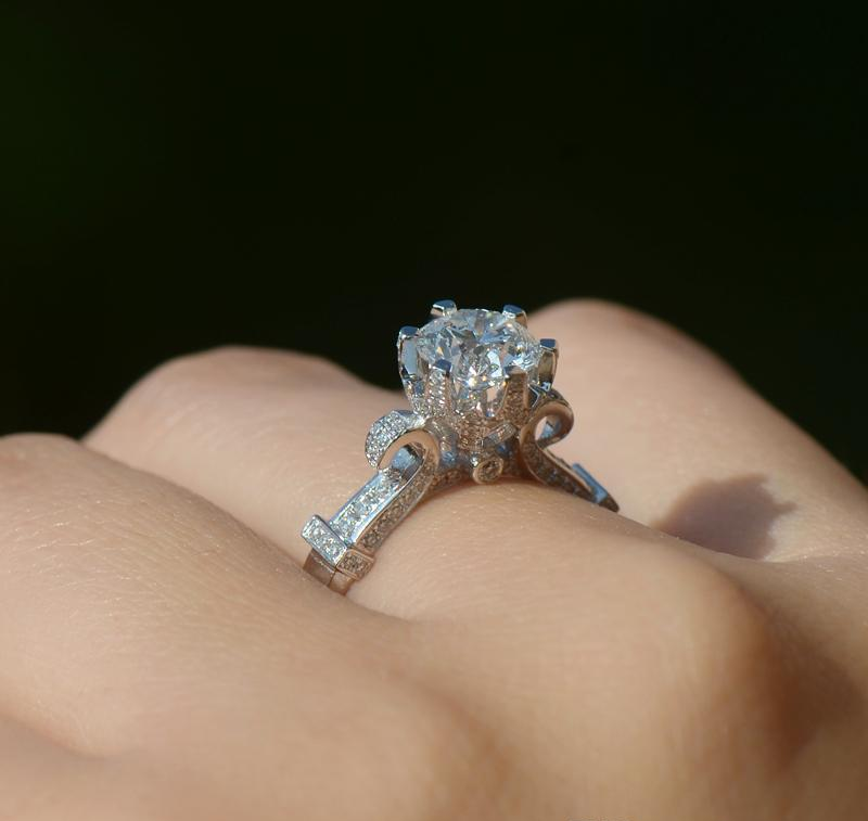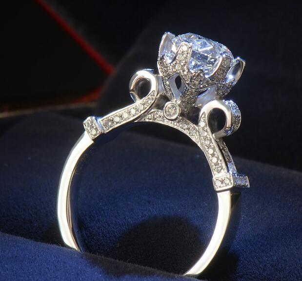 3Ct Round Cut Diamond Lotus Crown Solitaire Engagement Ring 14K White Gold Over