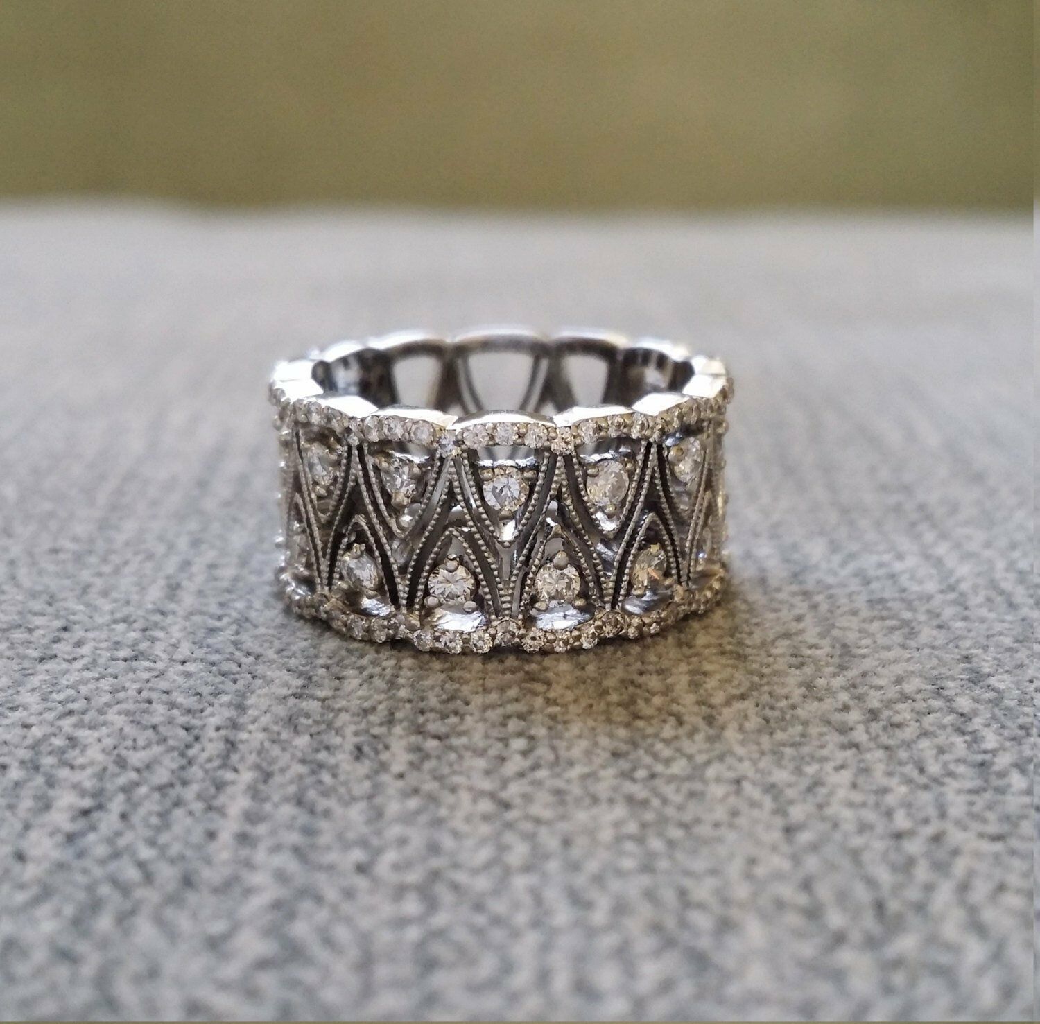 3Ct Round Cut Diamond Milgrain Eternity Wide Wedding Band 14K White Gold Finish