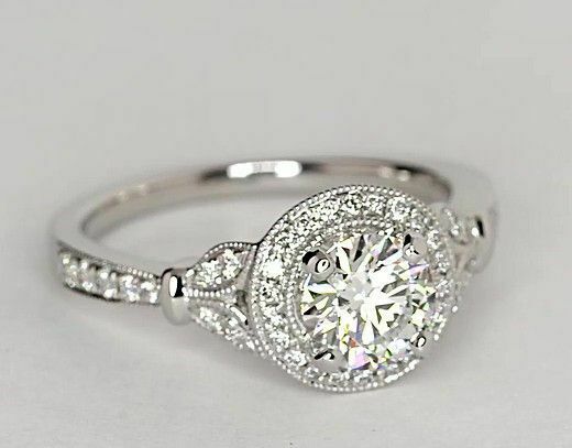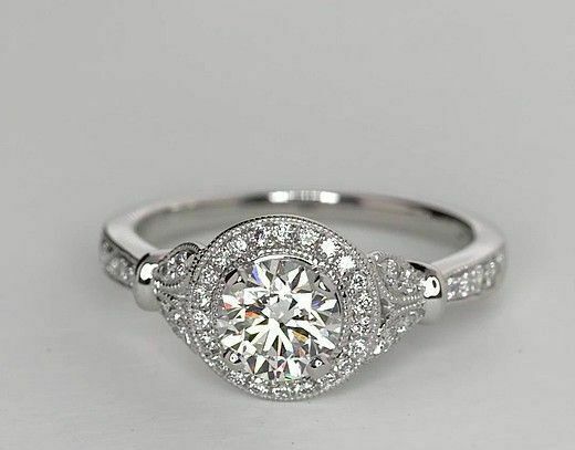 3Ct Round Cut Diamond Milgrain Vintage Halo Engagement Ring 14K White Gold Over