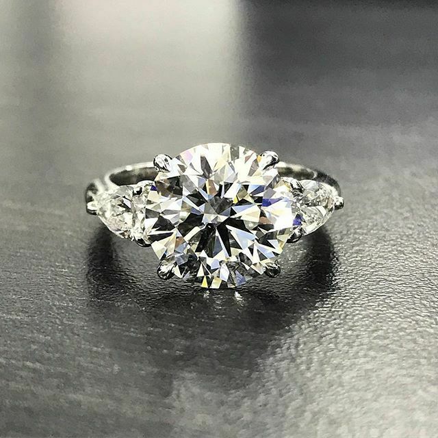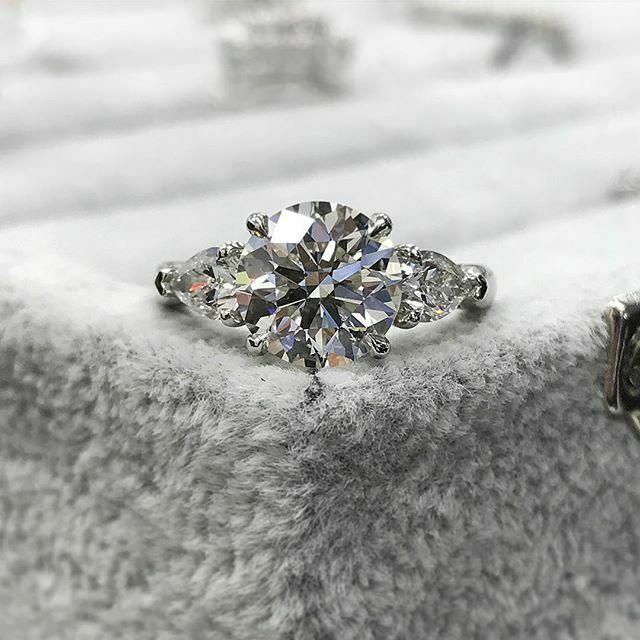 3Ct Round Cut Diamond Pear Accents Trilogy Engagement Ring 14K White Gold Finish