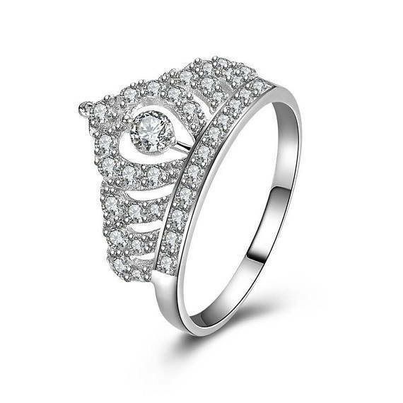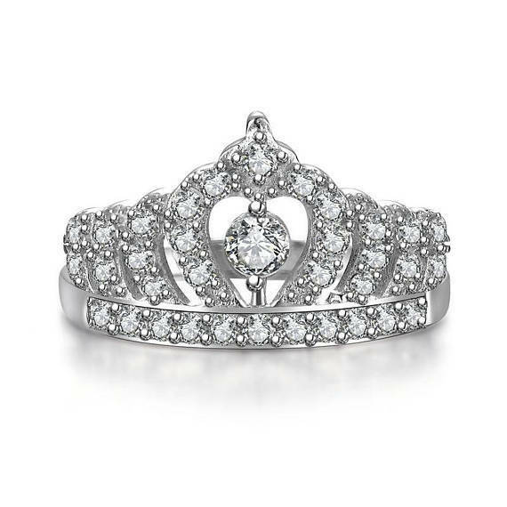 3Ct Round Cut Diamond Princess Tiara Crown Engagement Ring 14K White Gold Finish