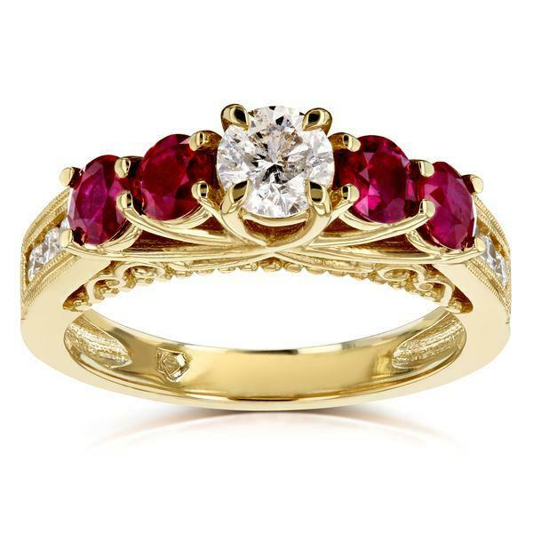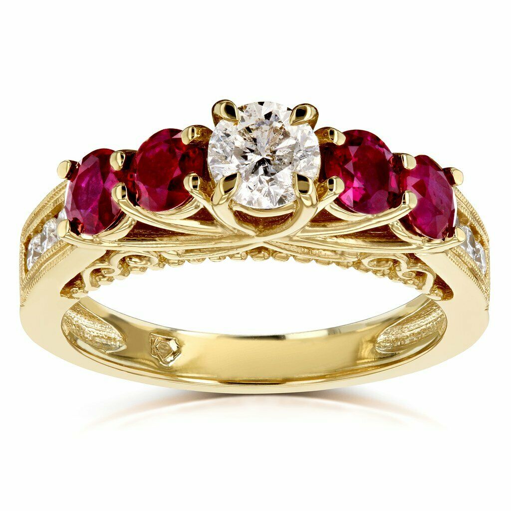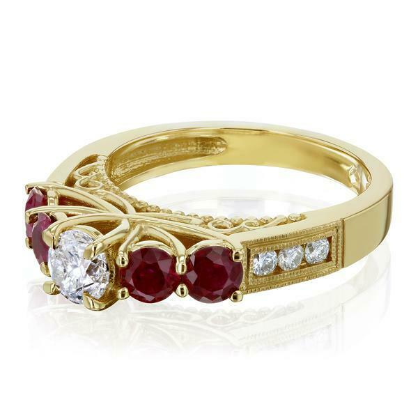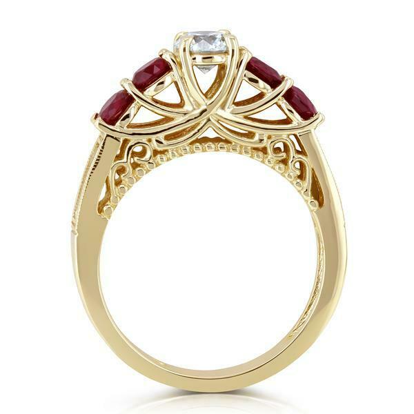 3Ct Round Cut Diamond Ruby Accent Vintage Engagement Ring 14K Yellow Gold Finish