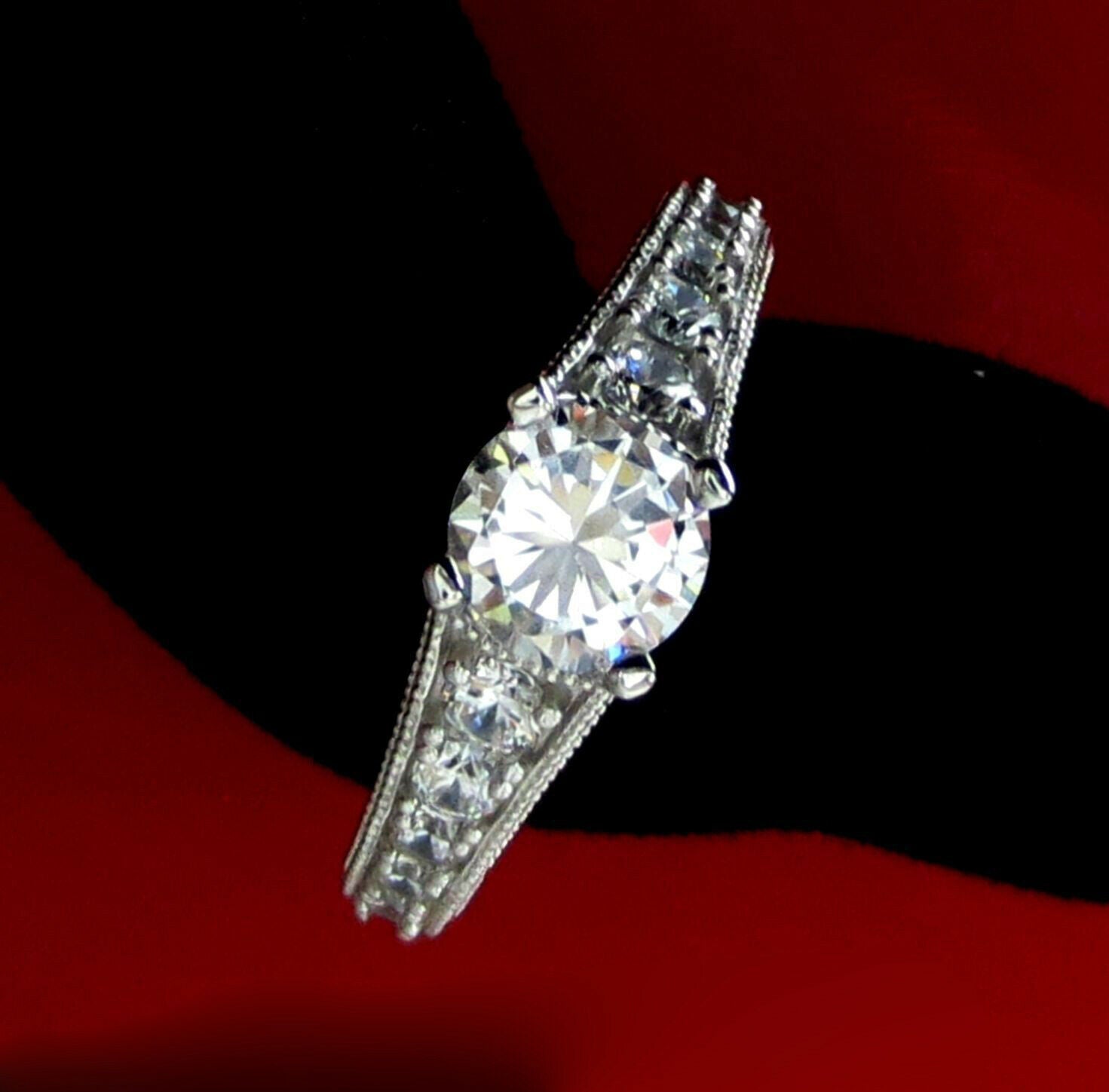3Ct Round Cut Diamond Shank Milgrain Vintage Engagement Ring 14K White Gold Over