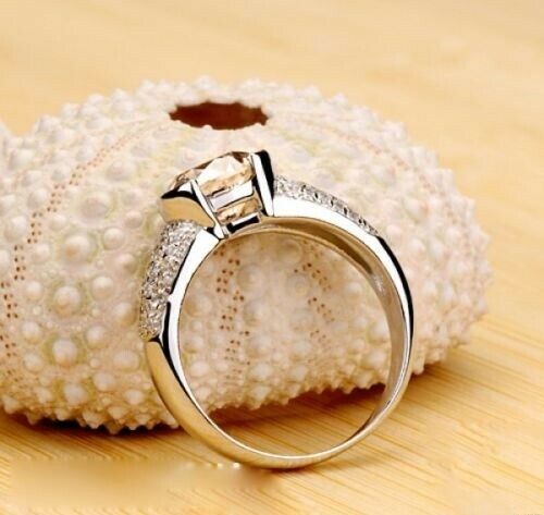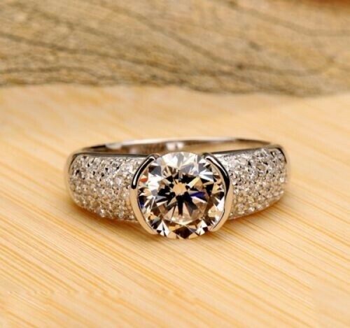 3Ct Round Cut Diamond Solitaire Engagement Ring 14K White Gold Over Wide Accents