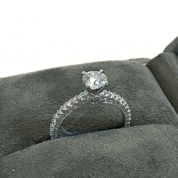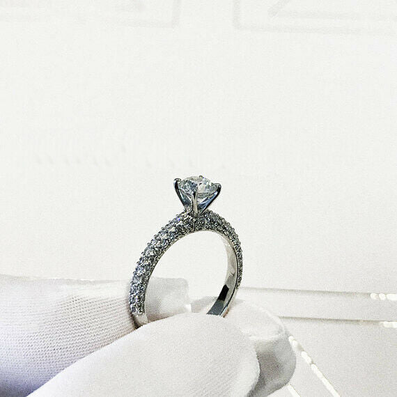 3Ct Round Cut Diamond Solitaire Iced Band Engagement Ring 14K White Gold Finish