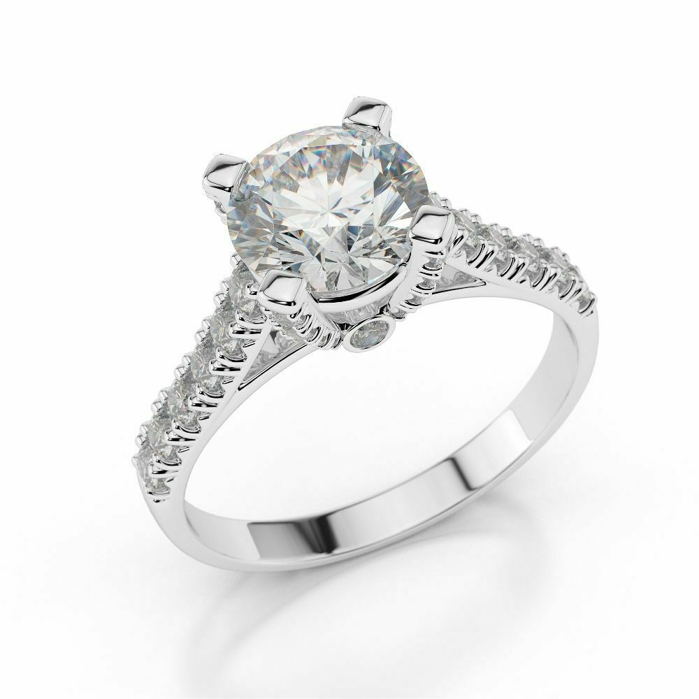 3Ct Round Cut Diamond Solitaire with Accent Engagement Ring 14K White Gold Over