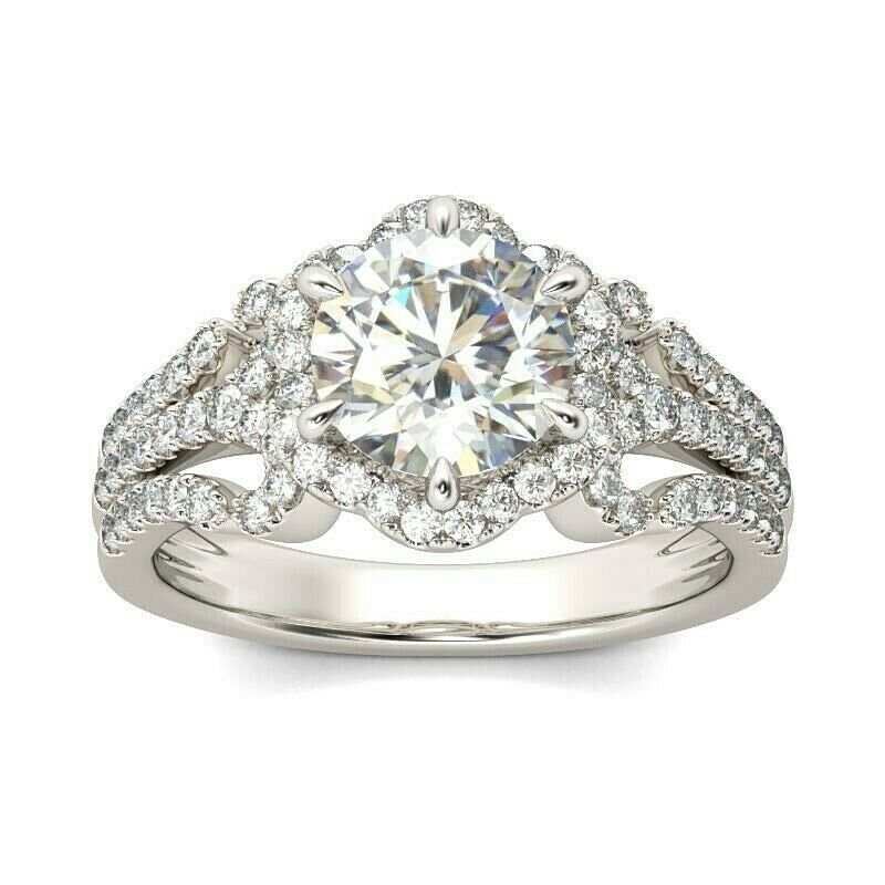 3Ct Round Cut Diamond Split Band Floral Halo Engagement Ring 14K White Gold Over