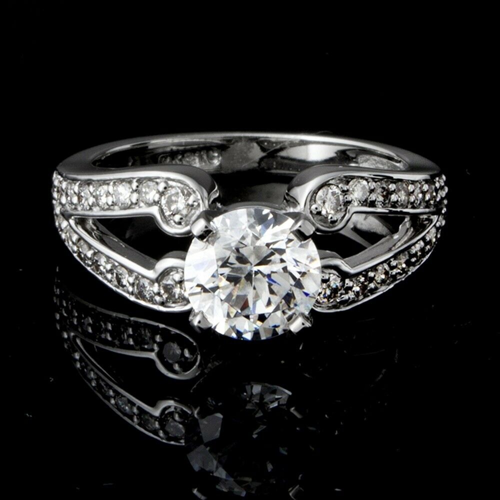 3Ct Round Cut Diamond Split Band Solitaire Engagement Ring 14K White Gold Finish